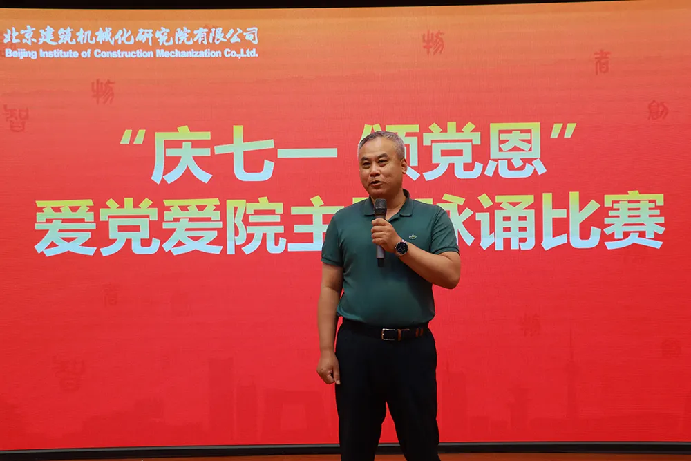 7月31日,北京建機院舉辦“慶七一 頌黨恩”愛黨愛院主題詠誦比賽,來自公司各單位18支參賽隊伍45名員工參賽。公司黨委書記、董事長兼總經(jīng)理宮劍飛,黨委委員、紀委書記呂振綱,黨委委員、總會計師楊如冰,黨委委員、副總經(jīng)理崔太剛、張聲軍、王東紅以及黨委委員、副總經(jīng)理、工會主席王春琢出席活動并擔任比賽評委。