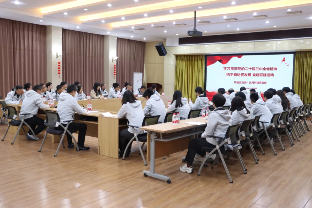 10月22日下午,北京建機(jī)院職能黨支部聯(lián)合凱博科技黨支部舉辦“學(xué)習(xí)貫徹黨的二十屆三中全會(huì)精神 攜手共進(jìn)促發(fā)展”黨建聯(lián)建活動(dòng)。北京建機(jī)院黨委委員、紀(jì)委書(shū)記呂振綱出席活動(dòng),黨委委員、總會(huì)計(jì)師楊如冰出席活動(dòng)并講授專(zhuān)題黨課。職能黨支部、凱博科技黨支部黨員、預(yù)備黨員、入黨積極分子、近三年入職的青年員工等40余人參加活動(dòng)。